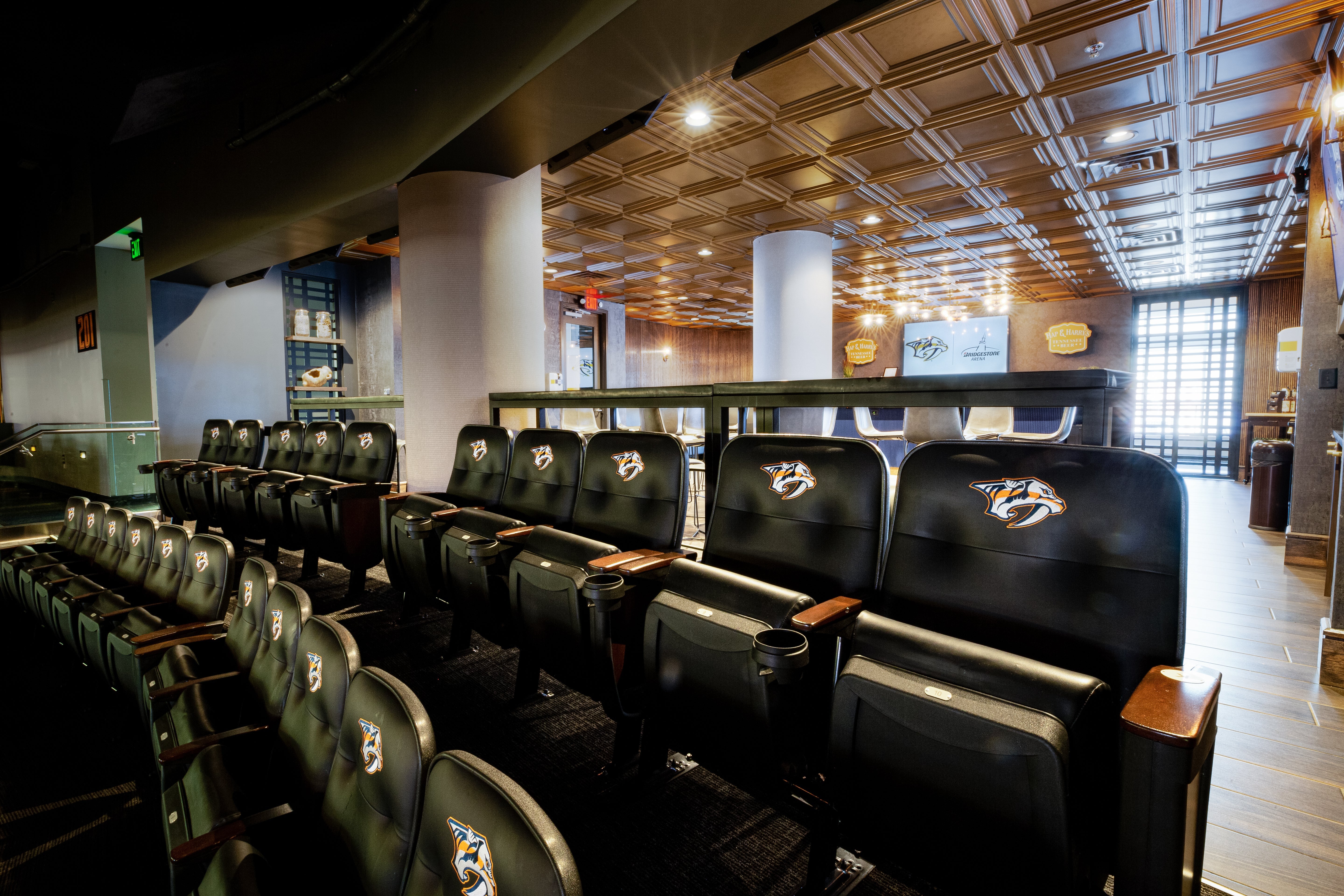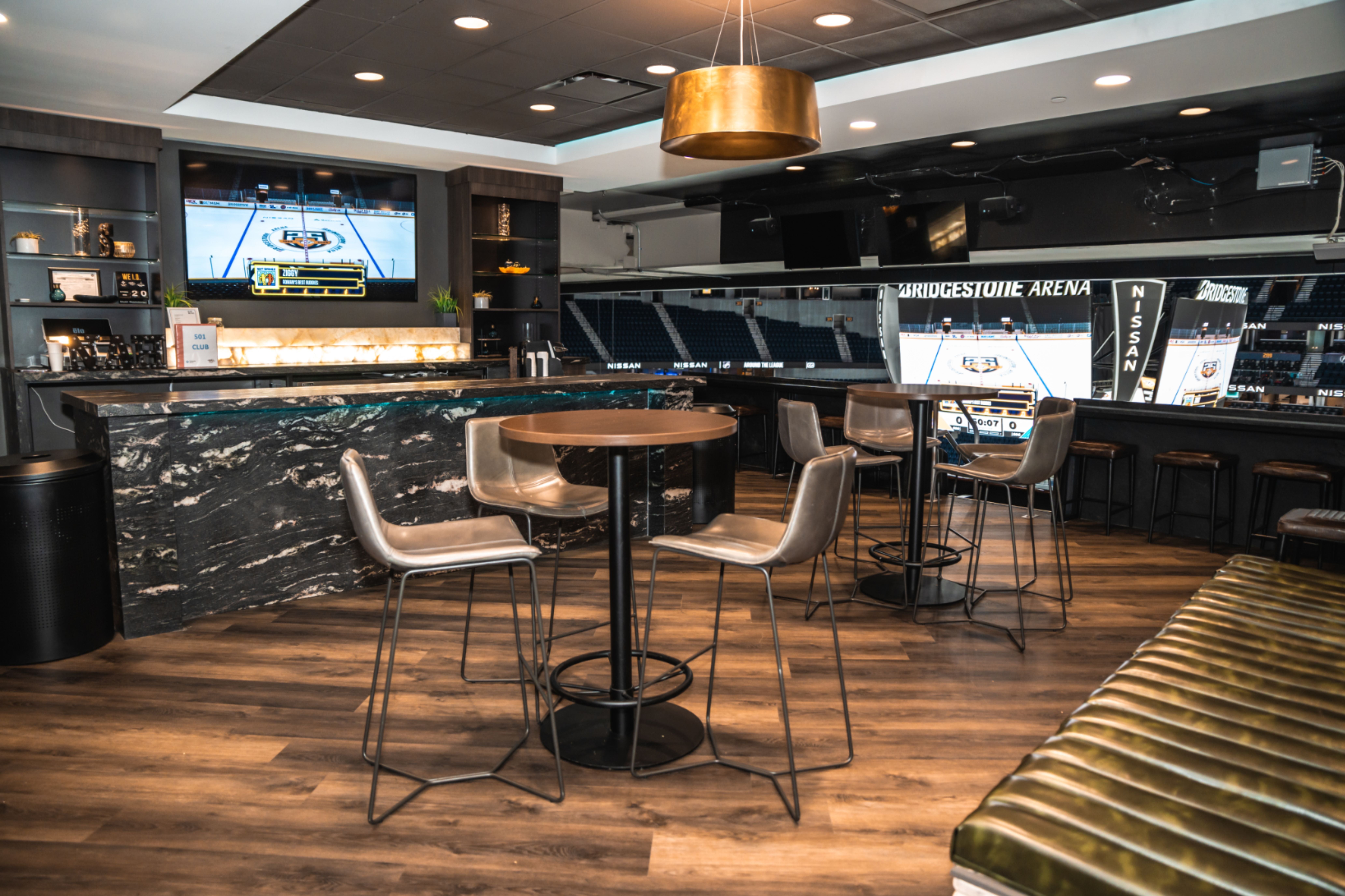 This exclusive space, located on the building’s Club Level, represents an unparalleled approach in how guests experience Bridgestone Arena events. Complete with all-inclusive food, beverage and parking, this intimate club provides each member with a suite experience in an 80-member, exclusive setting.